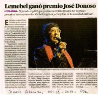 Lemebel ganó premio José Donoso [artículo] / El Diario de Atacama (Diario : Copiapó, Chile)-- sep. 5, 2013, p. 26 .