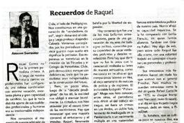 Recuerdos de Raquel [artículo] Abraham Santibáñez.