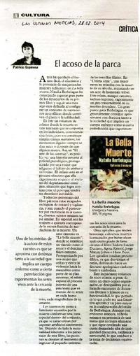 El acoso de la parca [artículo] / Patricia Espinosa Las Últimas Noticias (Diario : Santiago, Chile)-- feb. 28, 2014, p. 70 .