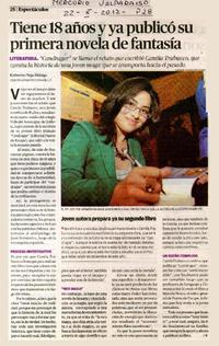 Tiene 18 años y ya publicó su primera novela de fantasía [artículo] / Katherine Vega Hidalgo. El Mercurio (Diario : Valparaíso, Chile)-- oct. 22, 2012, p. 28. .