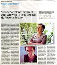 Valeria Sarmiento llevará al cine la novela La Pista de Hielo de Roberto Bolaño [artículo] / Carolina Cerda La Tercera (Diario : Santiago, Chile)-- feb. 11, 2014, p. 33 .