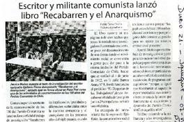 Escritor y militante comunista lanzó libro "Recabarren y el Anarquismo". [artículo] Diario 21 (Diario : Iquique, Chile)-- jul. 7, 2012, p. 19. .