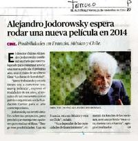 Alejandro Jodorowky espera rodar una nueva película en 2014 [artículo] / El Austral (Diario : Temuco, Chile)-- nov. 26, 2013, p. 27 .
