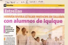 Hernán Rivera Letelier participa en talleres con alumnos de Iquique [artículo] Daniela Ortega Novoa.