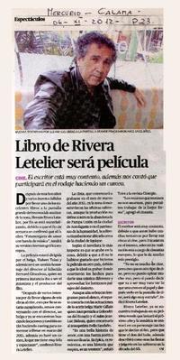 Libro de Rivera Letelier será película. [artículo] El Mercurio (Diario : Calama, Chile)-- nov. 6, 2012, p. 23. .