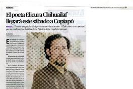 El poeta Elicura Chihuailaf llegará este sábado a Copiapó. [artículo] El Diario de Atacama (Diario : Atacama, Chile)-- nov. 20, 2012, p. 2012, p. 23. .