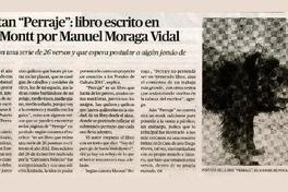 Presentan "Perraje": libro escrito en Puerto Montt por Manuel Moraga Vidal. [artículo] El Llanquihue (Diario : Puerto Montt, Chile)-- ene. 05, 2013, p. 29. .