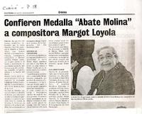 Confieren Medalla "Abate Molina" a compositora Margot Loyola [artículo]