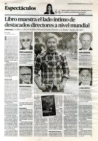 Libro muestra el lado íntimo de destacados directores a nivel mundial [artículo] / Flor Arbulú. El Mercurio de Valparaíso (Diario : Valparaíso, Chile)-- jun. 15, 2012, p. 40. .
