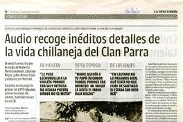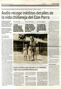Audio recoge inéditos detalles de la vida chillaneja del clan Parra [artículo] / Carolina Marcos. La Discusión (Diario : Chillán, Chile)-- oct. 21, 2012, p. 32. .