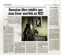 Rescatan libro inédito que Juan Emar escribió en 1922 [artículo] / Rodrigo Castillo R. Las Últimas Noticias (Diario : Santiago, Chile)-- abr. 23, 2014, p. 38 .