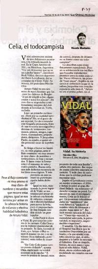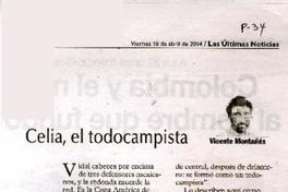 Celia, el todocampista [artículo] / Vicente Montañés Las Últimas Noticias (Diario : Santiago, Chile)-- abr. 18, 2014, p. 34 .