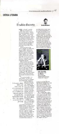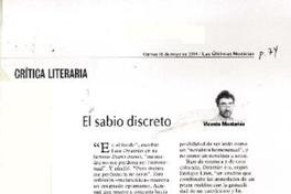 El sabio discreto [artículo] / Vicente Montañes Las Últimas Noticias (Diario : Santiago, Chile)-- may. 16, 2014, p. 74 .