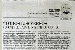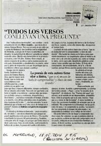 "Todos los versos conllevan una pregunta" [artículo] / Jéssica Atal El Mercurio (Diario : Santiago, Chile)-- may. 18, 2014, p. E15 (Revista de Libros) .