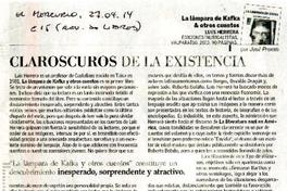 Claroscuros de la existencia [artículo] / El Mercurio (Diario : Santiago, Chile)-- abr. 27, 2014, p. E15 (Revista de Libros) .