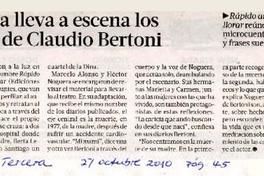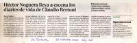 Héctor Noguera lleva a escena los diarios de vida de Claudio Bertoni [artículo] / Rocío Valdez C. La Tercera de La Hora (Diario : Santiago, Chile) oct. 27, 2010, p. 45. .