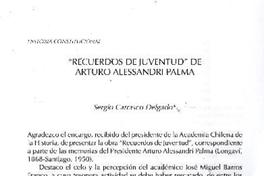 "Recuerdos de juventud" de Arturo Alessandri Palma [artículo] Sergio Carrasco Delgado.