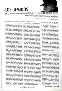 Los gemidos en la vanguardia latino-americana: el legado de Pablo de Rokha [artículo] / Naín Nómez. Revista Multitud (Revista : Santiago, Chile)-- no. 4 (sept. 2010), p. 47. .