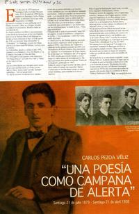Carlos Pezoa Véliz "Una poesía como campana de alerta" [artículo] / Fernando Quilodrán El Siglo (Diario : Santiago, Chile)-- abr. 25, 2014, p. 32 .