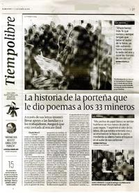 La historia de la porteña que le dio poemas a los 33 mineros [artículo] / Claudio Mora O. El Día (Diario : La Serena, Chile)-- sept. 17, 2010, p. 27. .