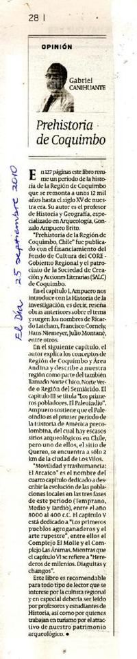 Prehistoria de Coquimbo [artículo] / Gabriel Canihuante. El Día (Diario : La Serena, Chile)-- sept. 25, 2010, p. 28. .