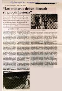 "Los mineros deben discutir su propia historia" [artículo] Alvaro Rivera E.