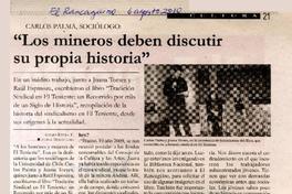 "Los mineros deben discutir su propia historia" [artículo] / Alvaro Rivera E. El Rancagüino (Diario : Rancagua, Chile)-- ago. 6, 2010, p. 21. .