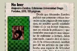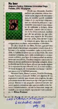 No leer [artículo] / Elías Palmer. Las Últimas Noticias (Diario : Santiago, Chile)-- oct. 6, 2010, p. 38. .