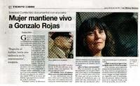 Mujer mantiene vivo a Gonzalo Rojas [entrevista] [artículo] / Enrique Niño. Las Últimas Noticias (Diario : Santiago, Chile)-- abr. 28, 2011, p. 40. .