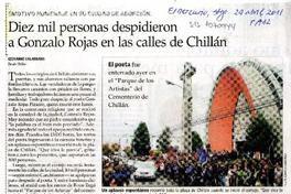Diez mil personas despidieron a Gonzalo Rojas [artículo] / Giovanni Calabrando. El Mercurio (Diario : Santiago, Chile)-- abr. 29, 2011, p. A12. .