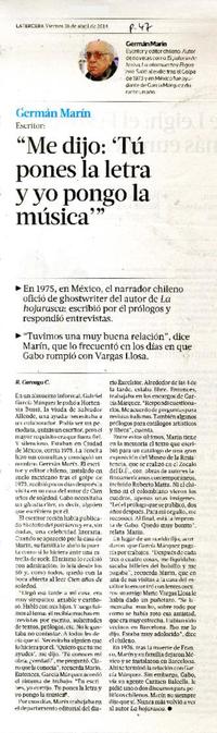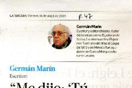 Germán Marín. "Me dijo: 'Tú pones la letra y yo pongo la música'" [artículo] / Roberto Careaga C. La Tercera (Diario : Santiago, Chile)-- abr. 18, 2014, p. 47 .