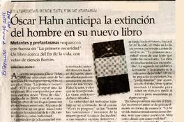 Óscar Hahn anticipa la extinción del hombre en su nuevo libro [artículo] / Constanza Rojas V. El Mercurio (Diario : Santiago, Chile)-- mayo 4, 2011, p. A17. .