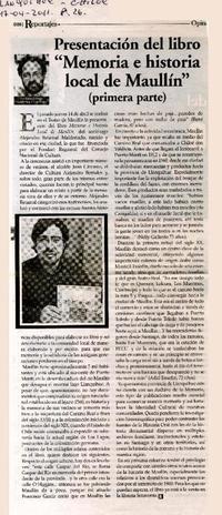 Presentación del libro "Memoria e historia local de Maullín" (primera parte) [artículo] / Pablo Fábrega. .