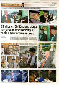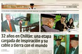 32 años en Chillán: una etapa cargada de inspiración y su cable a tierra con el mundo. [artículo] La Discusión (Diario : Chillán, Chile)-- abr. 26, 2011, p. 3. .