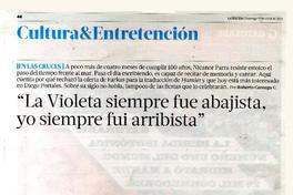 "La Violeta siempre fue abajista, yo siempre fui arribista" [artículo] / Roberto Careaga C. La Tercera (Diario : Santiago, Chile)-- abr. 13, 2014, p. 44-45 .