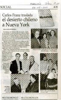 Carlos Franz traslada el desierto chileno a Nueva York [artículo] / Juan José Richards E. El Mercurio (Diario : Santiago, Chile)-- mayo 6, 2011, p. A21. .