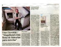 Díaz Eterovic: "Magallanes está llena de historias para novelas" [artículo] / La Tercera (Diario : Santiago, Chile)-- may. 28, 2014, p. 52 .
