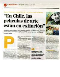 "En Chile, las películas de arte están en extinción" [artículo] / Andrés Nazarala La Segunda (Diario : Santiago, Chile)-- jun. 5, 2014, p. 26-27 .
