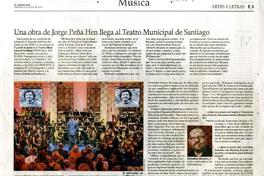 Una obra de Jorge Peña Hen llega al Teatro Municipal de Santiago [artículo] / El Mercurio (Diario : Santiago, Chile)-- jun. 1, 2014, p. E 3 (Artes y Letras) .