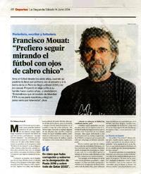 Francisco Mouat: "Prefiero seguir mirando el fútbol con ojos de cabro chico" [artículo] / Rebeca Araya B. La Segunda (Diario : Santiago, Chile)-- jun. 14, 2014, p. 20-21 .