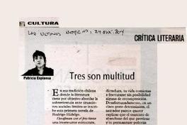 Tres son multitud [artículo] / Patricia Espinosa Las Últimas Noticias (Diario : Santiago, Chile)-- ene. 24, 2014, p. 70 .
