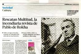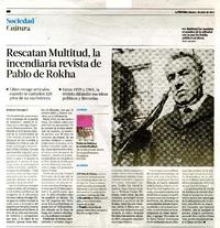Rescatan Multitud, la incendiaria revista de Pablo de Rokha [artículo] / Roberto Careaga C. La Tercera (Diario : Santiago, Chile)-- jul. 01, 2014, p. 40 .