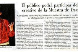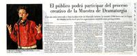 El público podrá participar del proceswo creativo de la Muestra de Dramaturgia [artículo] / Valentina Collao El Mercurio (Diario : Santiago, Chile)-- jul. 02, 2014, p. C12 .
