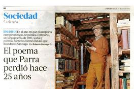 El poema que Parra perdió hace 25 años [artículo] / Roberto Careaga C. La Tercera (Diario : Santiago, Chile)-- jun. 14, 2014, p. 82-83 .