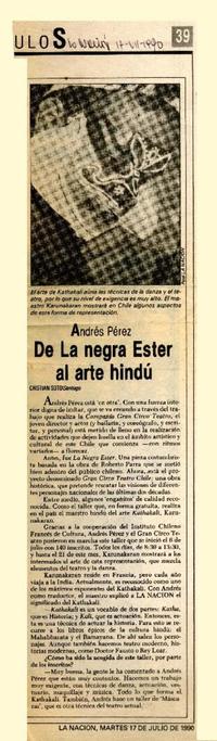 De la negra Ester al arte hindú [artículo] / Cristián Soto. La Nación (Diario : Santiago, Chile)-- jul. 17, 1990, p. 30. .