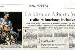 La obra de Alberto Vega realizará funciones exclusivas [artículo] Eduardo Miranda