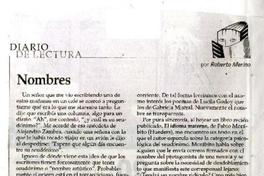 Nombres [artículo] / Roberto Merino. El Mercurio (Diario : Santiago, Chile)-- jul. 27, 2014, p. E14 (Revista de Libros) .