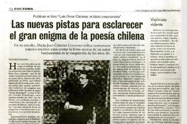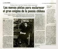 Las nuevas pistas para esclarecer el gran enigma de la poesía chilena [artículo] / Leonardo Sanhueza Las Últimas Noticias (Diario : Santiago, Chile)-- ago. 04, 2014, p. 50 .