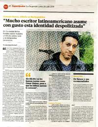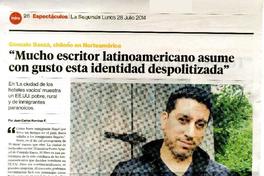 "Mucho escritor latinoamericano asume con gusto esta identidad despolitizada" [artículo] / Juan Carlos Ramírez F. La Segunda (Diario : Santiago, Chile)-- jul. 28, 2014, p. 26 .
