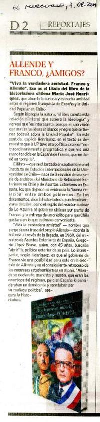 Allende y Franco, ¿Amigos? [artículo] / El Mercurio (Diario : Santiago, Chile)-- ago. 3, 2014, p. D2 .
